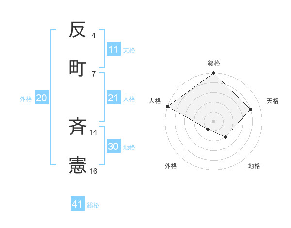 反町 斉憲さんを姓名の画数から五運を鑑定
