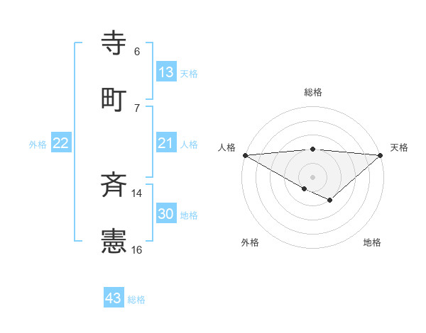 寺町 斉憲さんの総格は43画の2点!