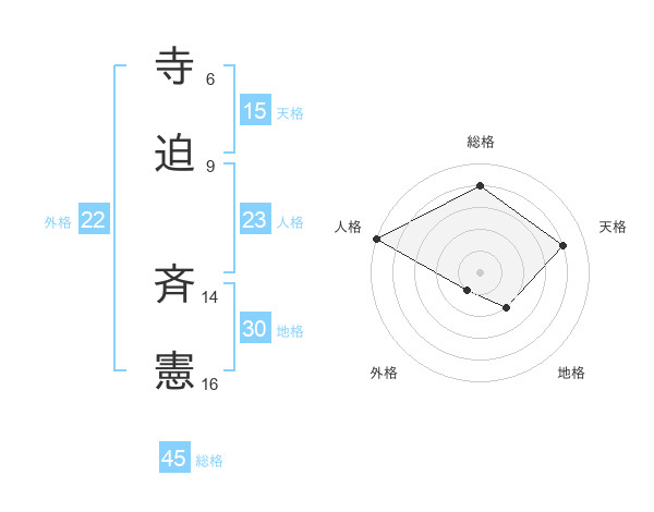 寺迫 斉憲さんの天格は15画の4点!