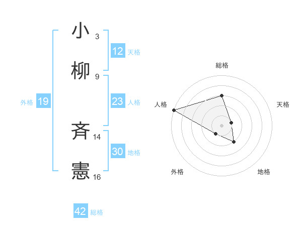 小柳 斉憲さんを姓名の画数から五運を鑑定