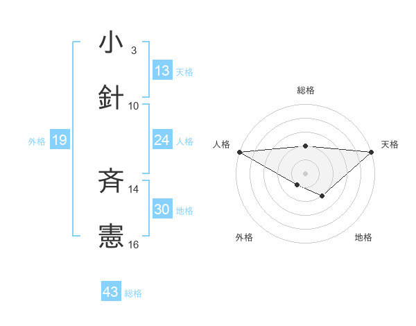 小針 斉憲さんを姓名の画数から五運を鑑定