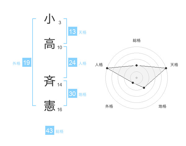 小高 斉憲さんの総格は43画の2点!