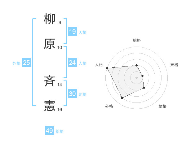 柳原 斉憲さんの総格は49画の2点!