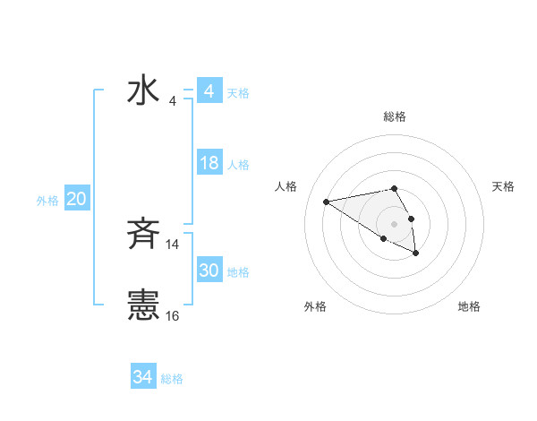 水 斉憲さんの総格は34画の2点!