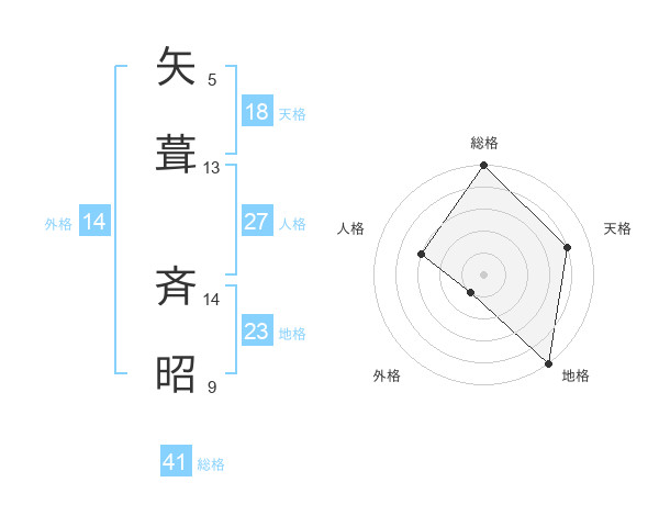 矢葺 斉昭さんの総格は41画の5点!