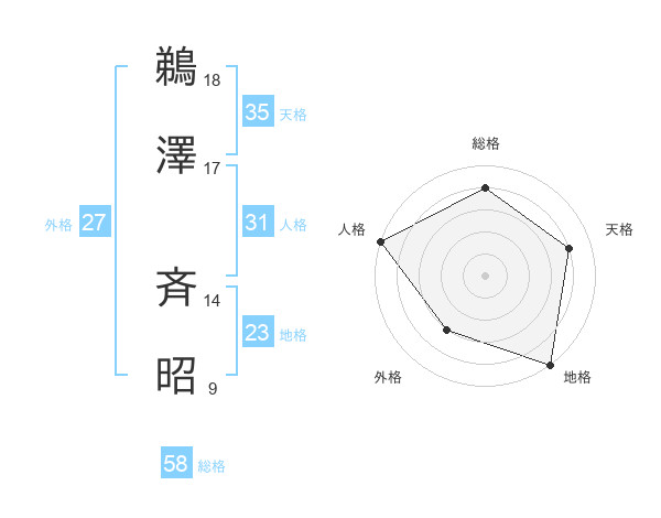 鵜澤 斉昭さんの総格は58画の4点!