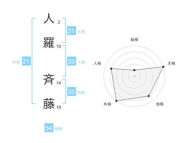 人羅 斉藤さんの天格は21画の5点!