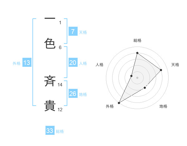 一色 斉貴さんの外格は13画の5点!