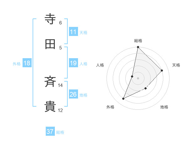 寺田 斉貴さんの総格は37画の5点!
