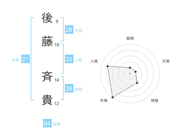 後藤 斉貴さんを姓名の画数から五運を鑑定