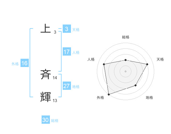 上 斉輝さんの総格は30画の2点!