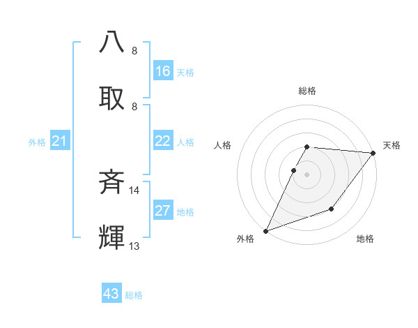 八取 斉輝さんの外格は21画の5点!