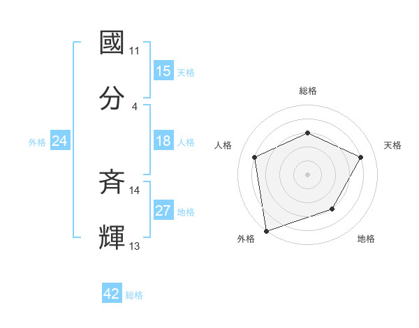 國分 斉輝さんを姓名の画数から五運を鑑定