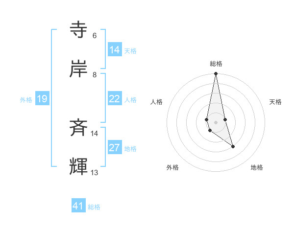 寺岸 斉輝さんを姓名の画数から五運を鑑定