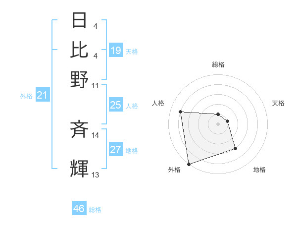 日比野 斉輝さんの外格は21画の5点!