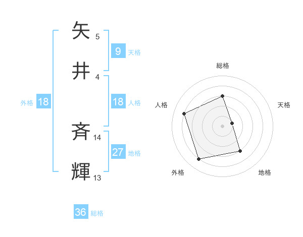 矢井 斉輝さんの総格は36画の3点!