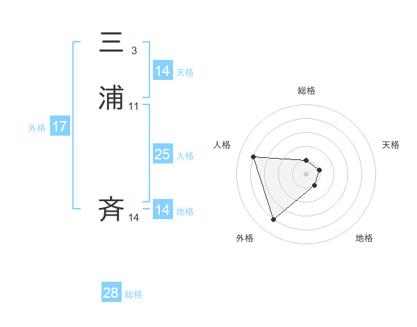 三浦 斉さんの天格は14画の1点!