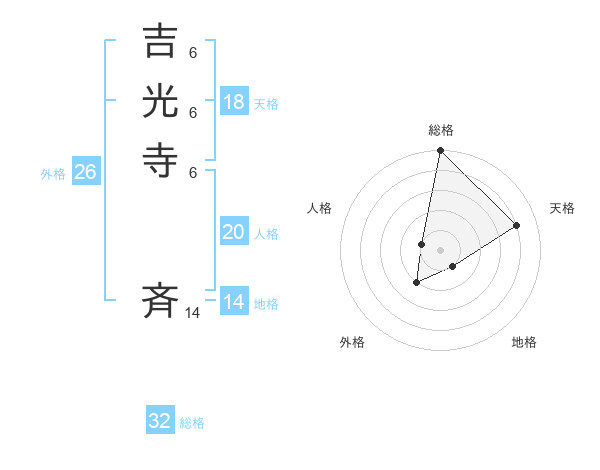 吉光寺 斉さんの総格は32画の5点!