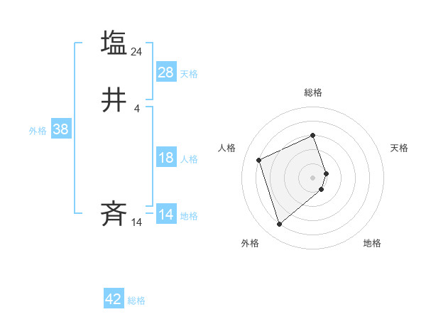 塩井 斉さんの総格は42画の3点!