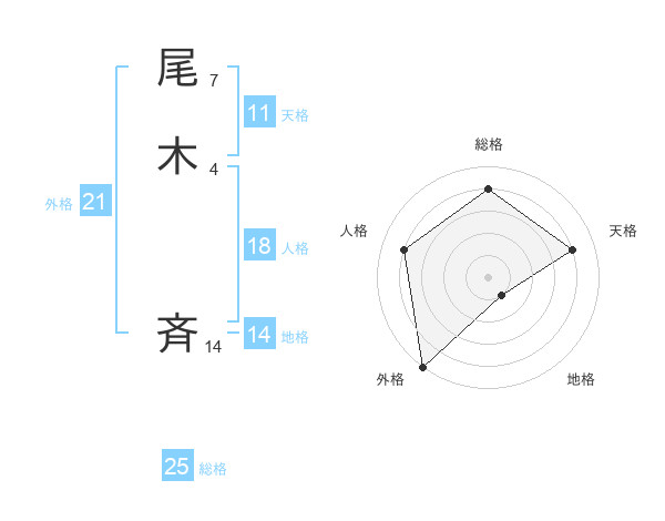 尾木 斉さんの総格は25画の4点