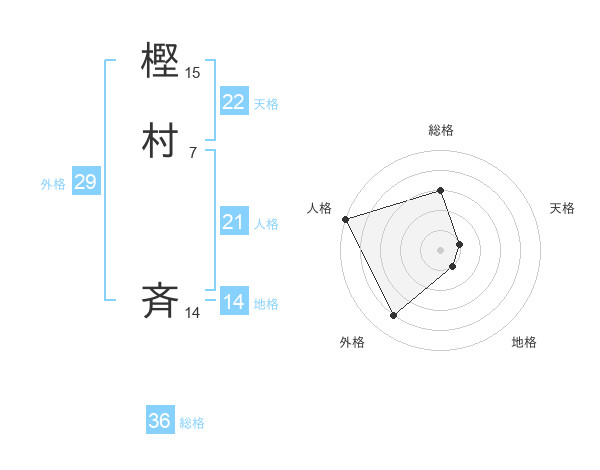 樫村 斉さんの天格は22画の1点!