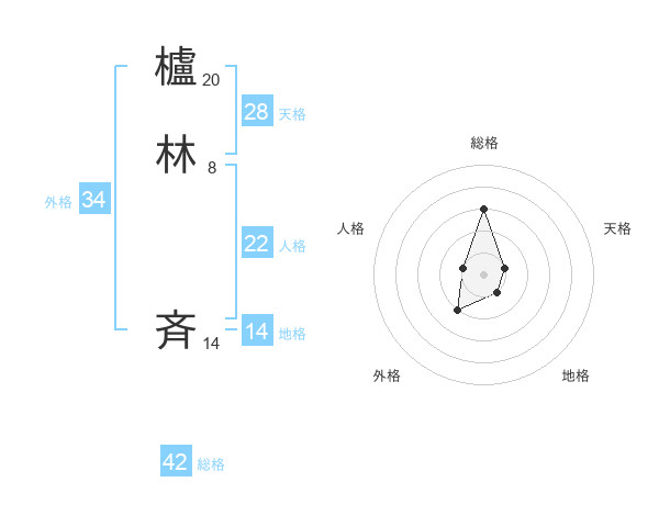 櫨林 斉さんの総格は42画の3点!
