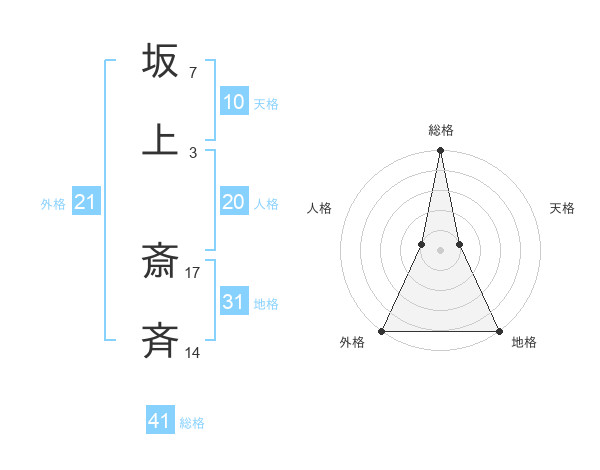 坂上 斎斉さんを姓名の画数から五運を鑑定