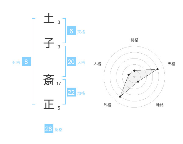 本サイトの鑑定結果の正当性は保証しません。鑑定結果は参考程度にお読みください。実際の名づけにご利用される場合は、姓名判断についてご自身でよくお調べください。