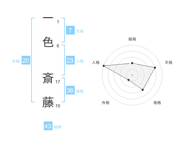 一色 斎藤さんの総格は43画の2点!