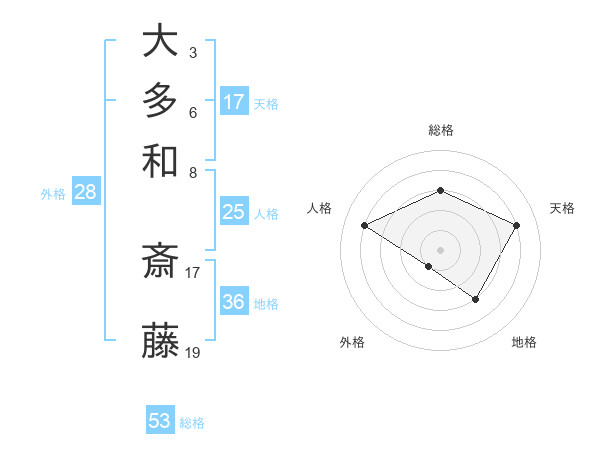 大多和 斎藤さんの総格は53画の3点!