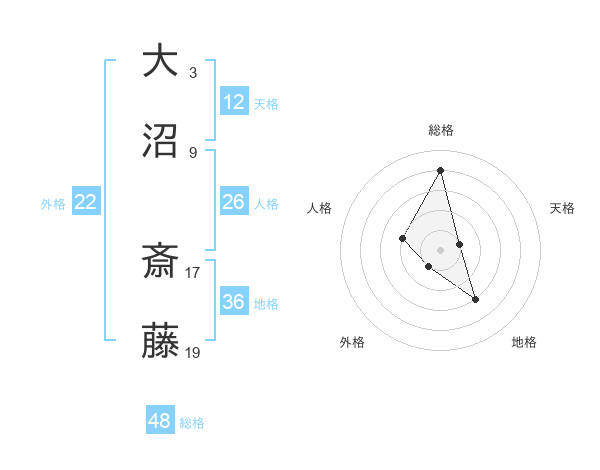 大沼 斎藤さんの総格は48画の4点