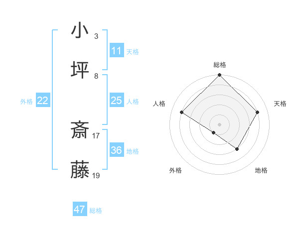 小坪 斎藤さんを姓名の画数から五運を鑑定