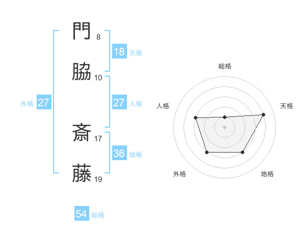 門脇 斎藤さんの総格は54画の1点!