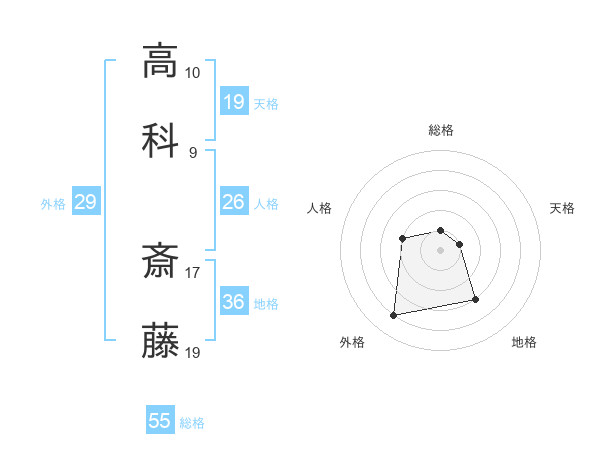 高科 斎藤さんを姓名の画数から五運を鑑定