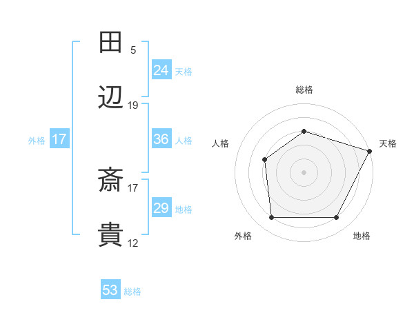 田辺 斎貴さんを姓名の画数から五運を鑑定