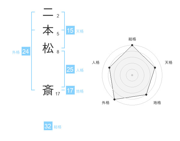 二本松 斎さんの総格は32画の5点!