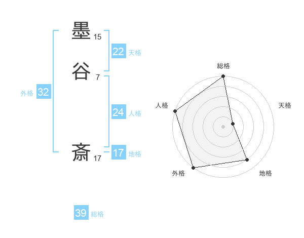 墨谷 斎さんの総格は39画の5点!