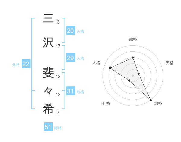 三沢 斐々希さんを姓名の画数から五運を鑑定