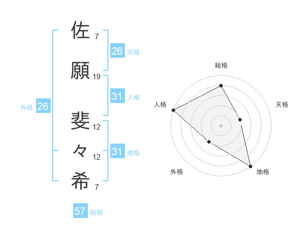 佐願 斐々希さんの総格は57画の4点!