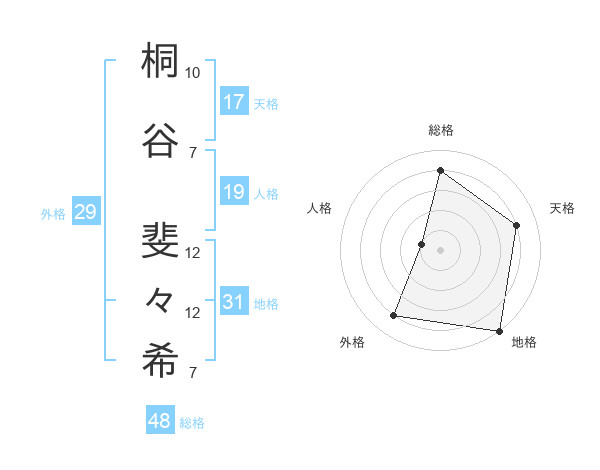 桐谷 斐々希さんを姓名の画数から五運を鑑定