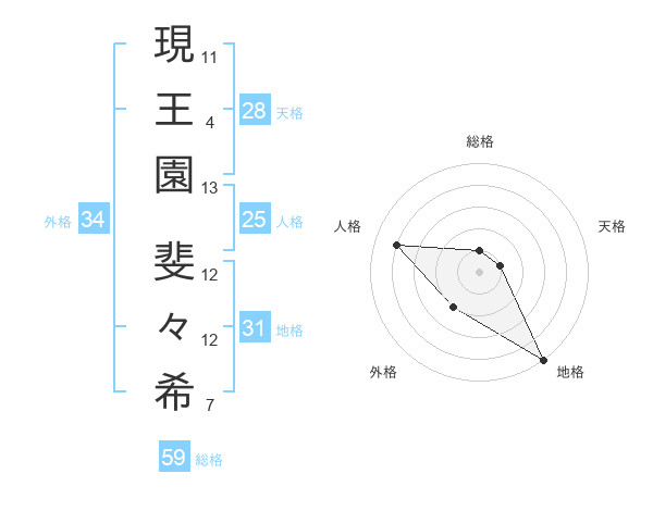 現王園 斐々希さんを姓名の画数から五運を鑑定