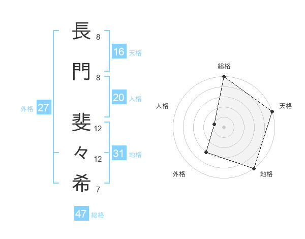 長門 斐々希さんを姓名の画数から五運を鑑定