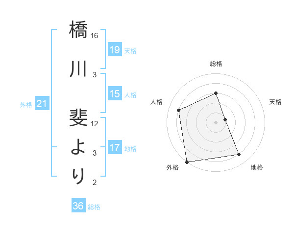 橋川 斐よりさんを姓名の画数から五運を鑑定