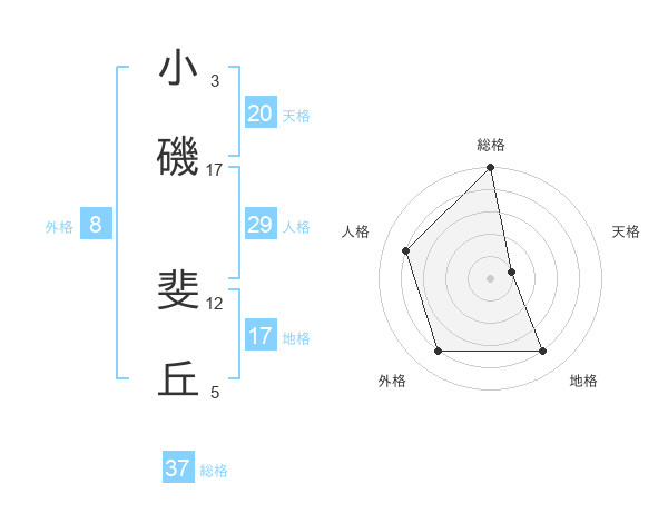 小磯 斐丘さんの天格は20画の1点!