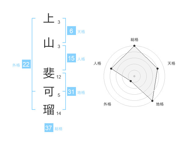 上山 斐可瑠さんの総格は37画の5点!