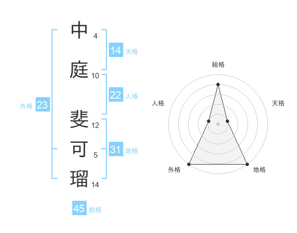 中庭 斐可瑠さんの総格は45画の4点!