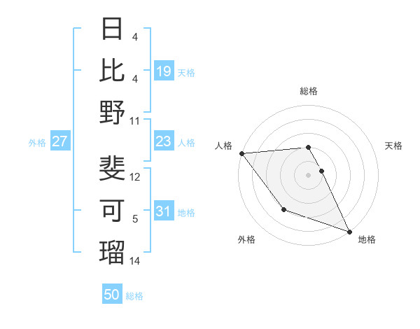 日比野 斐可瑠さんの総格は50画の2点!