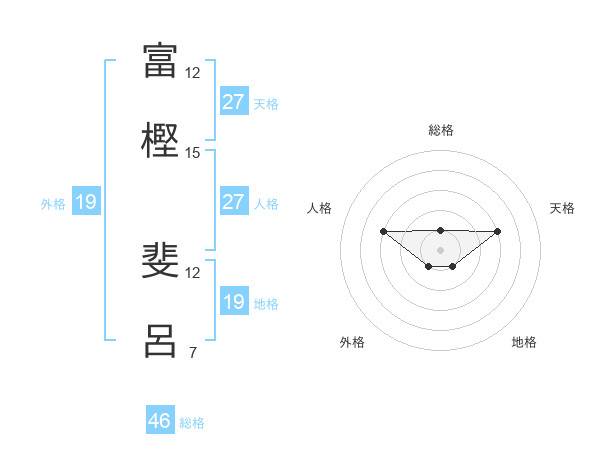 富樫 斐呂さんの総格は46画の1点!