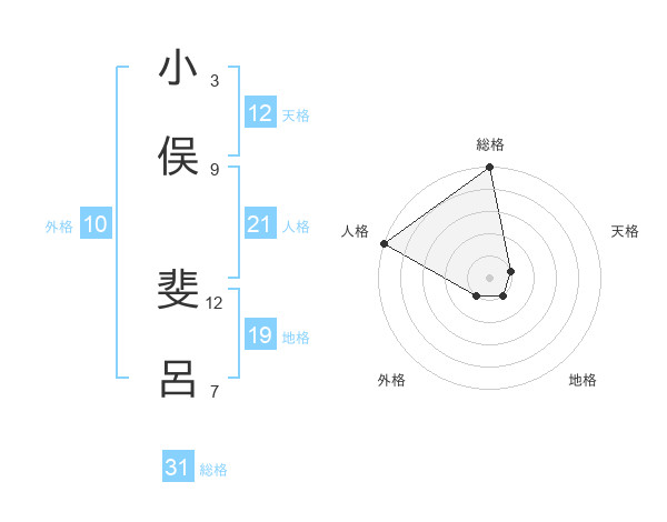 小俣 斐呂さんを姓名の画数から五運を鑑定