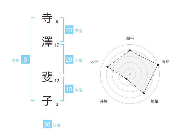 寺澤 斐子さんの総格は38画の4点!